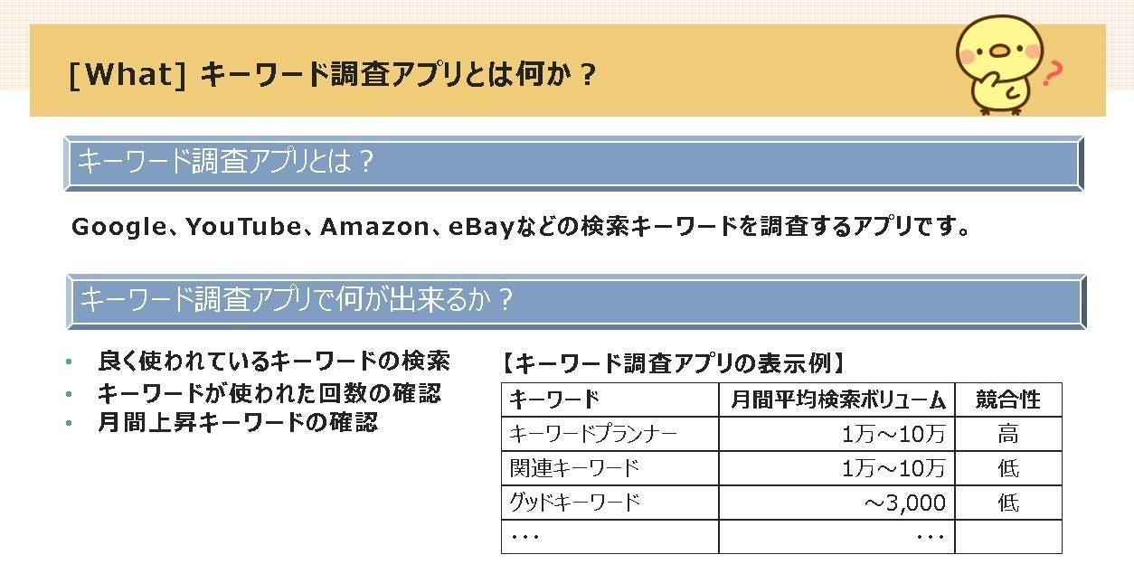 ・Google、Amazonなどで良く使われる検索キーワードを一覧表示するアプリケーション