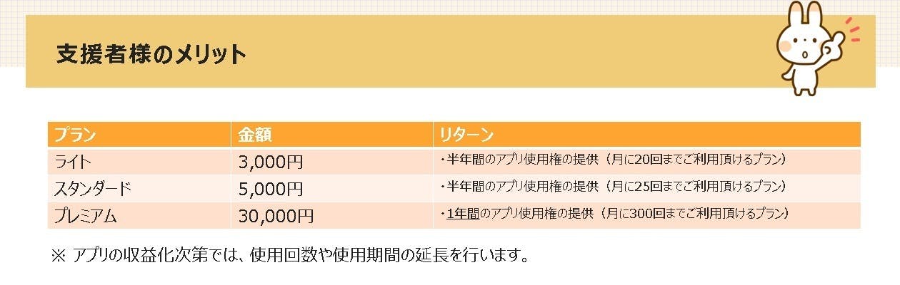 ※目標金額を超えて集まった費用は API契約に使います。支援者様の人数に応じてAPI利用枠を増やす必要があるため。