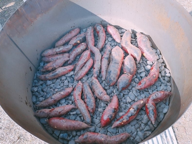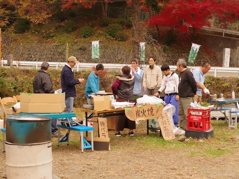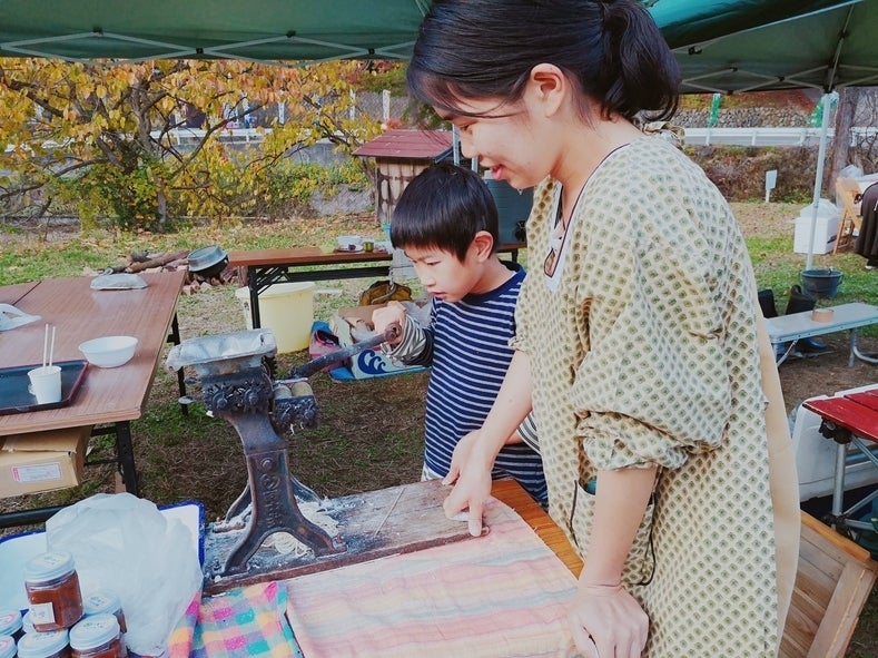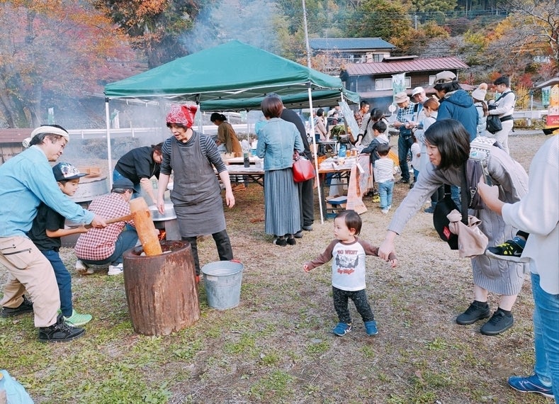 ずりだしうどんや石焼き芋、もちつき、薪割り体験