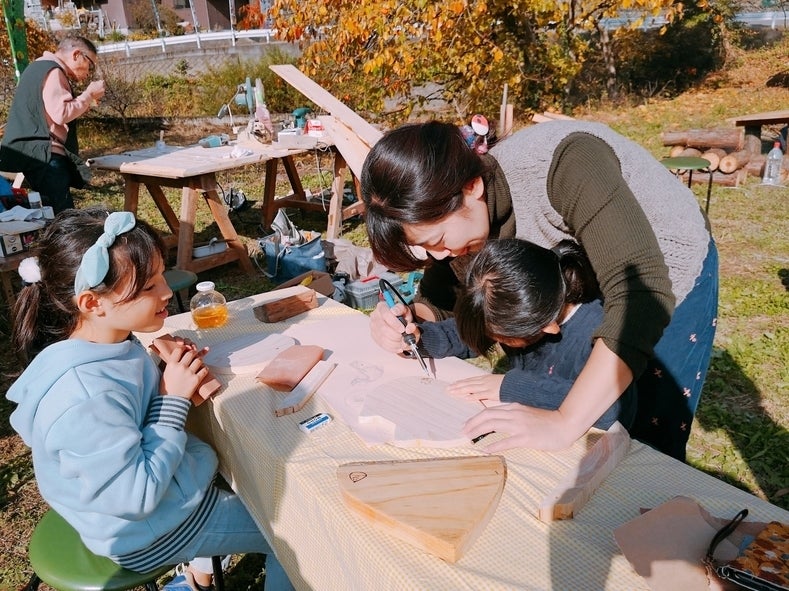 返礼品でもあった大工さんやお姉さんと看板や木工品づくり