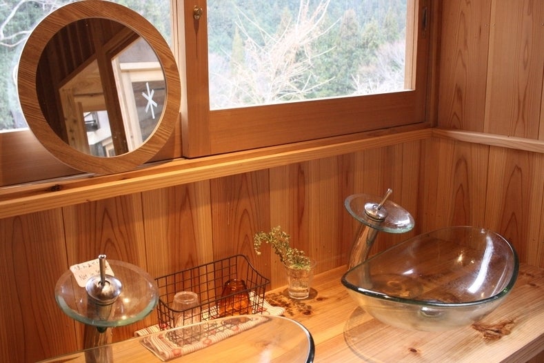 囲炉裏で西原産の炭火焼き、ピザ窯、うどんづくり、流しそうめん、自炊も大歓迎!