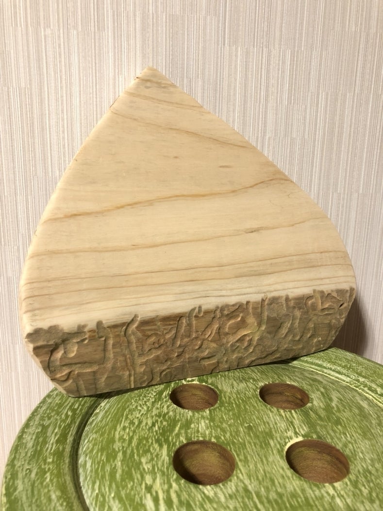 画像はオイル染み込ませる前の、栗の形のカッティングボートです。長いものも、不思議な形のも、自由にカットできますよー!