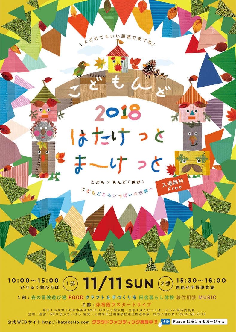 2018/11/16 13:36目標金額103%でゴール! はたけっとまーけっと2018、 無事開催できました! たくさんの方々のご支援をいただき、ほんとうにありがとうございました。無事大成功でイベントを終えることが出来ました。 当日の様子を一部ですが、ご報告させていただきます。 当日は、紅葉真っ盛りでお天気も味方してくれました。 落ち葉プール あそぼうトラック 里山デザインうちはらあきこ作のおかいこ 地域おこし協力隊のシャボン玉 トントゥーわなげやフリーマーケット 竹のジャングルジム たまちゃんの紙芝居 劇団ジャムのパネルシアター 小田晃生さんのライブ アートユニットゼロの アートライブ 午前中は大きな布に落書き 廃校活用のアイディア寄せ書きも。 午後は、箱のワークショップ。 地元や移住者のお店やさんも 青空ヘアカット 返礼品になった、コーヒー&アロマハンドマッサージやさん。 ずりだしうどんや石焼き芋、もちつき、薪割り体験 返礼品でもあった大工さんやお姉さんと看板や木工品づくり Takkiduda norihico松本尚志×アートユニットゼロの ラスタートライブ 音、光、パフォーマンス、こどもたちと一緒に、不思議な空間でひとつになりました。こちらは、また動画にて当日の様子をお伝えいたします! 取り急ぎになってしまいましたが、本当にありがとうございましたみなさまからいただいたお金で無事お支払いも終わり、マイナス5000円の持ち出しで終えることができました。(長田容子から寄付しました) 当日ご参加いただいた皆様、ご出店いただいた方々、遠くから心を寄せてくださった皆様、ありがとうございました 廃校活用に向けてこのイベントをムダにせずつなげていきます! 雑穀や、味噌セットなどの返礼品も準備が整い次第お送りします。当初12月頭を予定しておりましたが、来週にはお手元に届くようになると思います。 どうぞ、今後ともよろしくお願いいたしますm(_ _)m この度は本当にありがとうございました♥️ はたけっとまーけっと実行委員長 長田容子 もっと見る