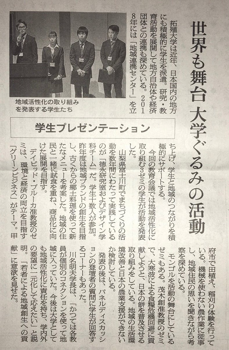 先月、拓殖大学で行われた「朝日新聞会議」にて、我々徳永ゼミナールがクラウドファンディングを含めたゼミでの活動を、プレゼンテーションしました。