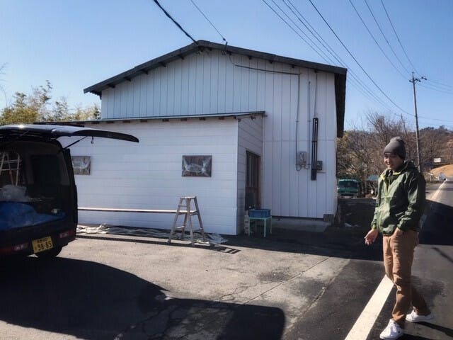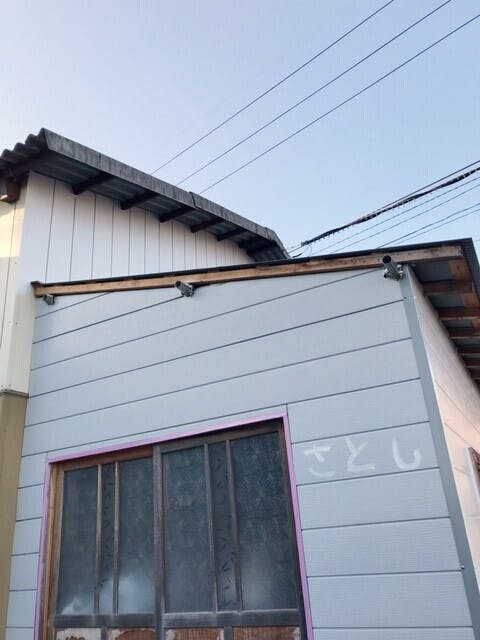 夕方で逆光ですが、外装が綺麗になってきました。シャッターを変更、窓のサッシも塗装、看板に物置の引戸も探さないとと、毎日が慌ただしく過ぎ去っていきます。