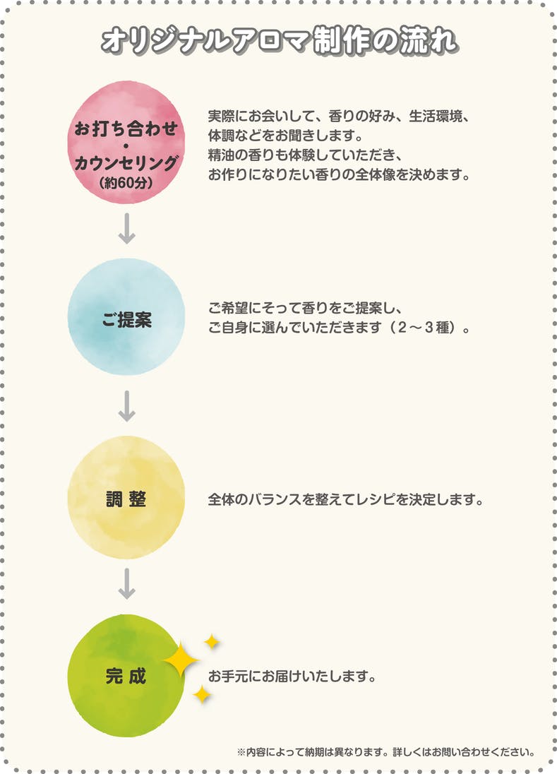 精油ラベルにお考えいただいた名前を入れて後日お届けいたします。