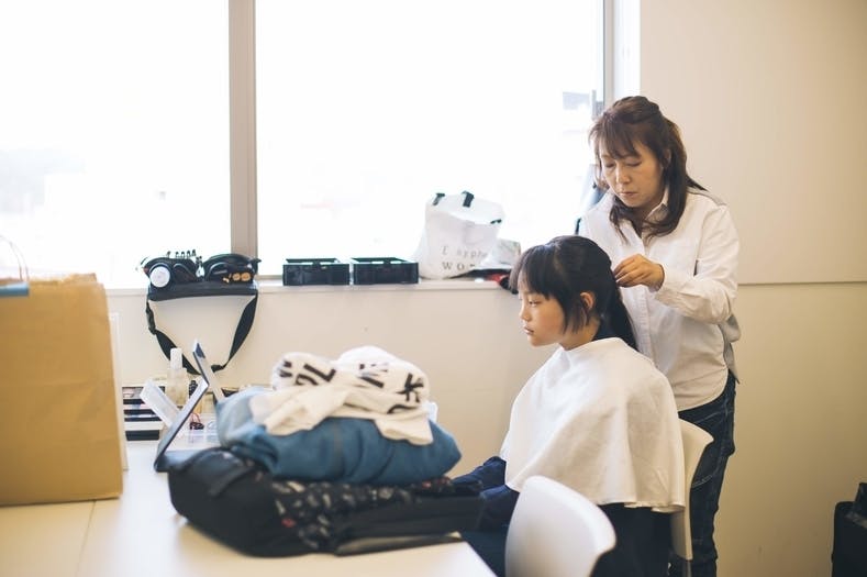 メイクの浅井さんが、キャストたちにメイクを施します。
