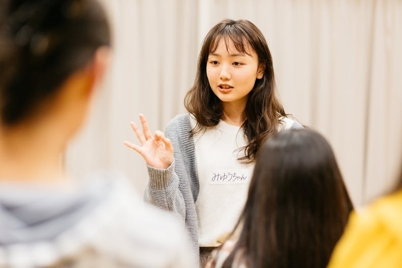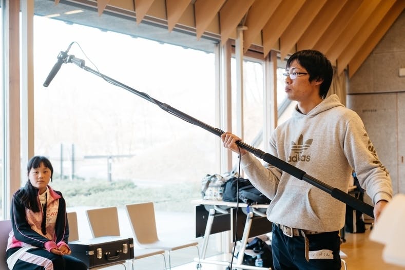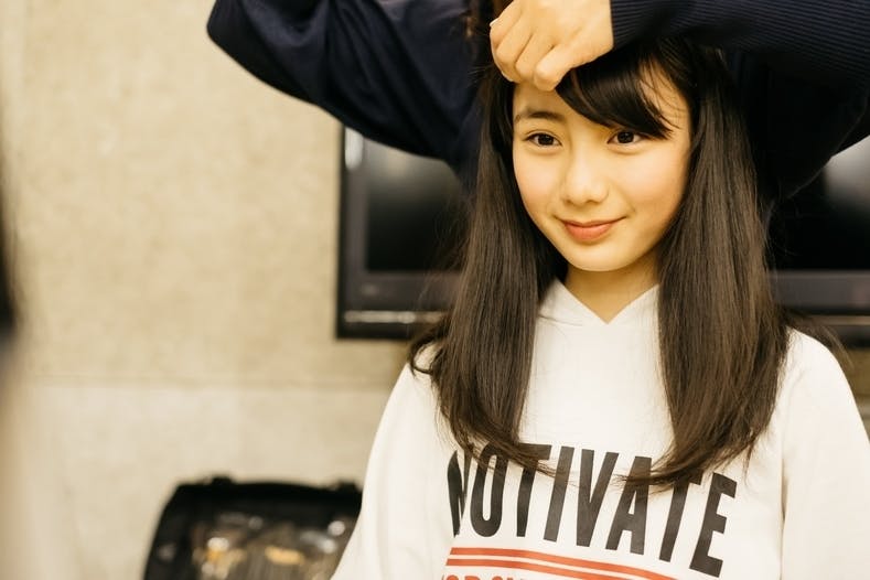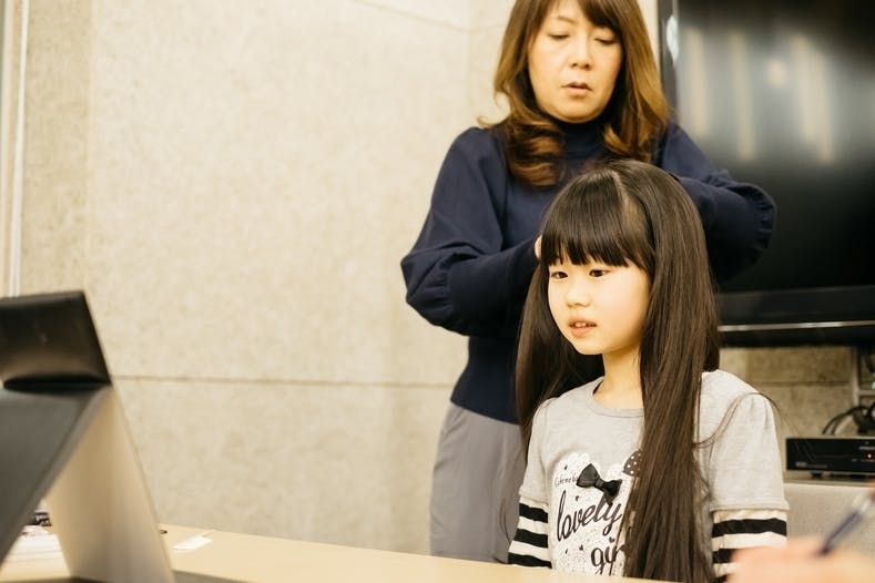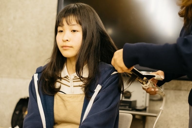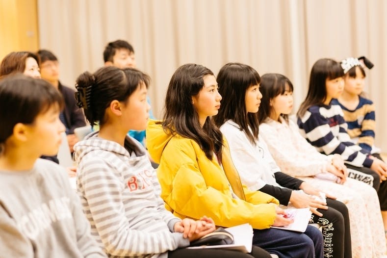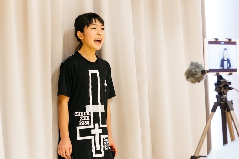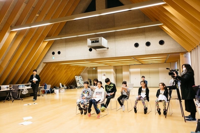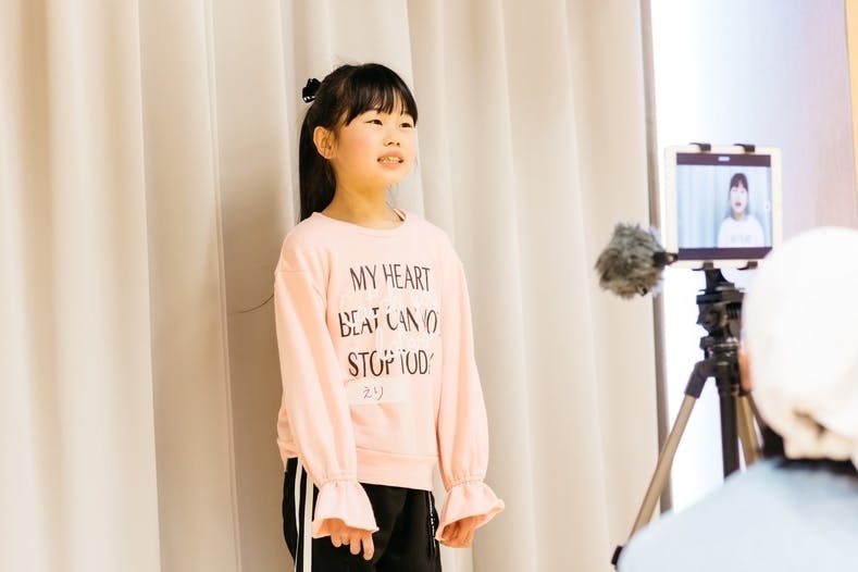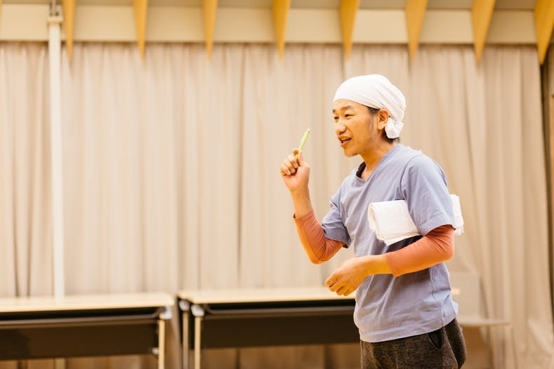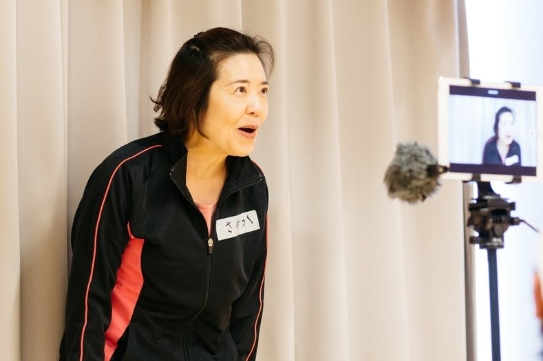 演技練習のかたわら、スタッフのお母さんやおばあちゃん、お姉ちゃんが