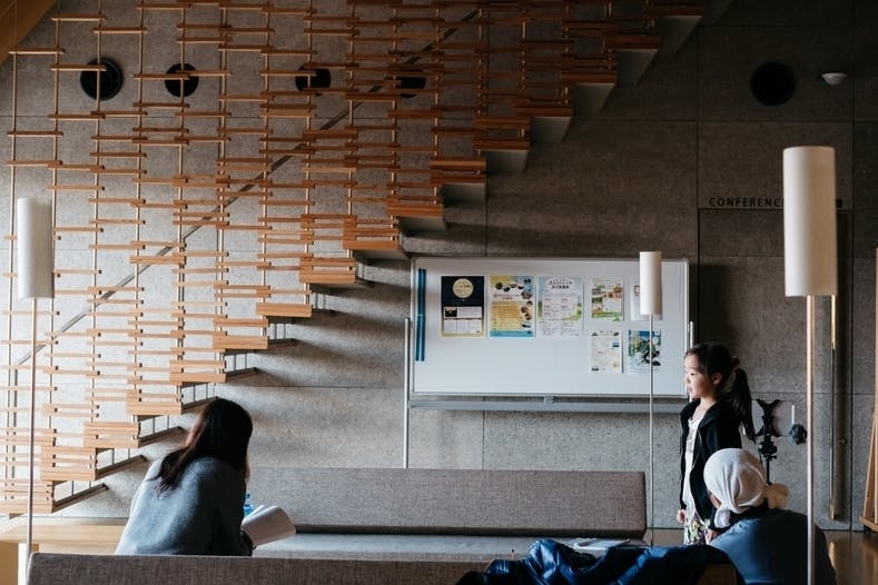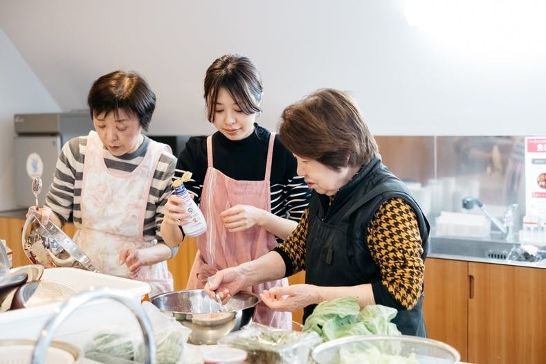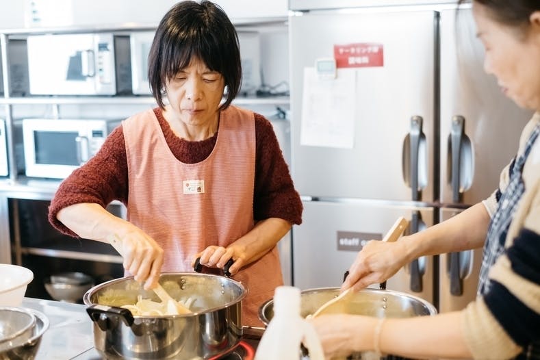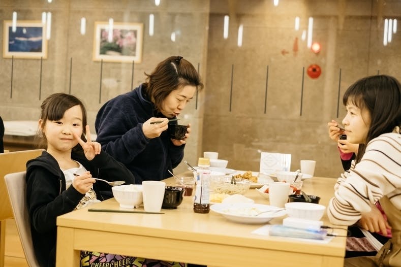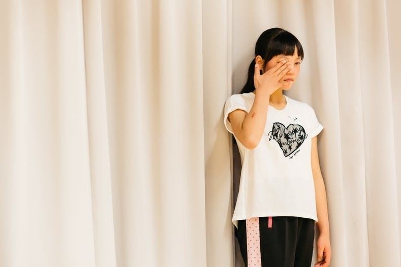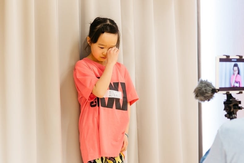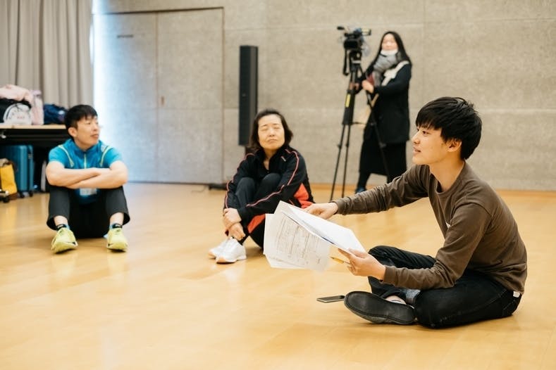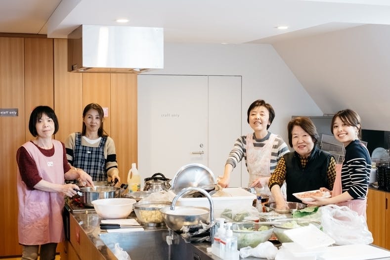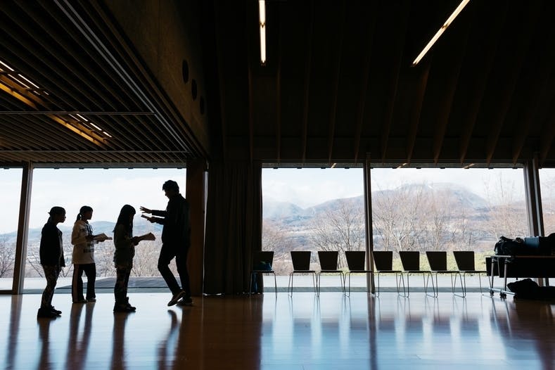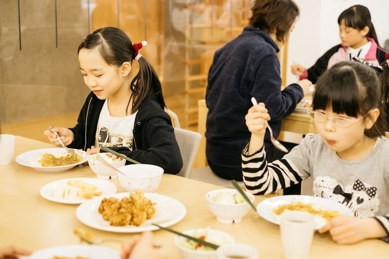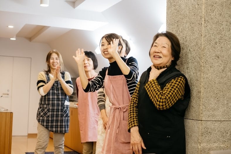 演技練習のかたわら、スタッフのお母さんやおばあちゃん、お姉ちゃんが