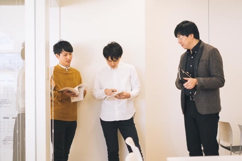 真剣な表情で脚本を読み解くキャストたち。