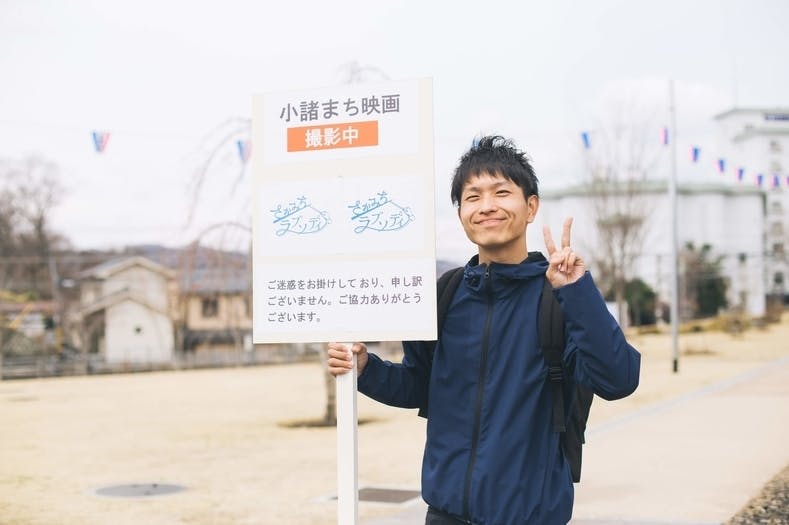 こんばんは! LPのせがじゅんです。 作業服が意外と似合うと言われました。 心の底からうれしいです。 4/21(日)は二日目の映画撮影でした。 1989年のこの日は、任天堂が携帯型ゲーム機「ゲームボーイ」を日本で発売した日らしいです。 マリオを親指がすりきれるまでやったのはいい思い出です。 この日の撮影はロケ地がたくさんあって大変でした。。。 けれどもロケ地は100%小諸です!!! 「甘味処みつばち」での撮影。ただしとまいをパシャリ。 昼間は行列ができるほどの美味しいお店です! お忙しいなか、ありがとうございました。 お城のようないちごパフェをほおばるまい。 自分も味見しましたが、 めっっっっっちゃ美味しかったです!!! 続いては「小諸氷風穴牧場」での撮影。 ヤギさんたちがのんびり過ごしていました。 自分もヤギさんたちのようになりたいな。。。 ヤギたちにエサをせがまれる、ゆみ。 勢いがすごくて、この後おしりからこけちゃいました。 けががなくてよかったです!笑 小学生たちに、監督が演出をつける。 ここから見える小諸の山の風景がすごく壮大で、 映画ではどんな風に映るのか楽しみです! キャストを見守るスタッフ陣。 真剣に見守ります。 アベンジャーズにだって、負けません。 絵に描いたようなはるな。 どんな役柄になるのでしょうか。。 続いては「ほんまち町屋館」にて撮影とお昼休憩でした! はしゃぐせがわ。 はしゃぐただし。 はしゃぐ女子―ズ。 でも、演技のときはとっても真剣なんです! 続いては、小諸駅前の「停車場ガーデン」での撮影。 懐古園の桜まつりの影響からか、人がたくさんいて、 めちゃめちゃ注目されました! やっぱり映画撮影はどんなものか興味があるんですね! 実は、この日でえりと、会長がクランクアップ! 満足そう。けれどもすこしさみしげな表情。 楽しい時間は、あっという間。 ふたりとも、お疲れ様でした!! 集合写真を、パシャリ。 つづいては、「株式会社ユウワ」にてこの日最後の撮影を開始! ベトナム人労働者のような田中プロデューサー。 撮影に気合が入る瀬川。 あとで監督から言われましたが、登場シーンは25秒ほどとのこと。 無駄に気合を入れていましたね。 けれども元演劇部部長の意地をみせましたよ! そんなこんなで、本日の撮影は終了! 次の撮影は4/28! 全国1位を取った野岸小学校管楽部の大規模撮影の日です。 実は、観客役のエキストラを募集していますので、 ご協力いただける方は、 ぜひお越しください! 日時:4月28日(日) 14:45集合 場所:小諸市文化センター 文化会館ホール(長野県小諸市甲1275番地ー2) 以上、せがじゅんでした! 【写真】photographer 金井里奈