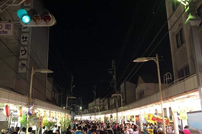ライトアップ時には和傘の柄がさらに映え、祭りの粋な夜を演出してくれます。