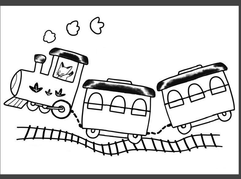 色鉛筆だけでなく、落ち葉やどんぐりを使ってSLのイラストに塗り絵をしてもらうクラフトを考えています。