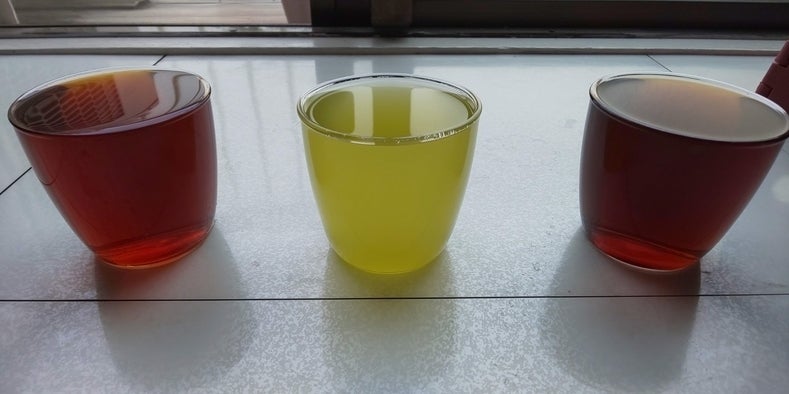 その代わり、紅茶、緑茶、ウーロン茶、3種類のお茶を使うことにしました。それに加えて違う風味を感じさせるために甘さも違います。ヾ(≧∇≦*)/。