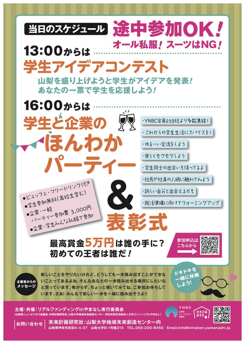 みなさん!一緒に応援団になって、ここ山梨、そして山梨を盛り上げる学生をサポートしませんか??