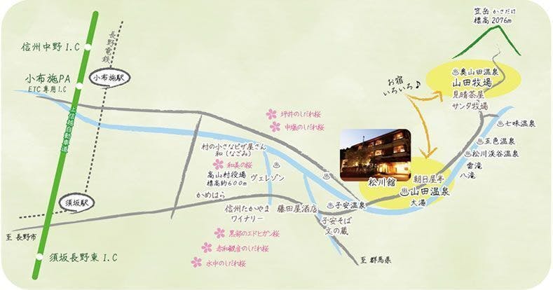小布施駅から無料送迎可能(時期によっては別ルートも。お問合せください)。