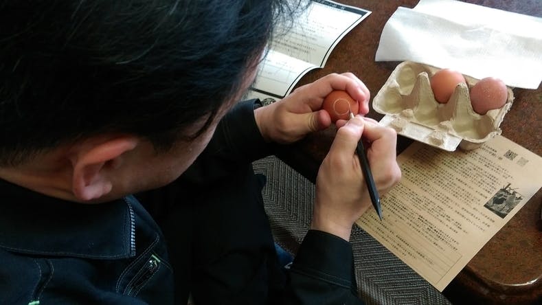 本日、むらたま卵を使って、エッグランプを作るワークショップを開催しました。