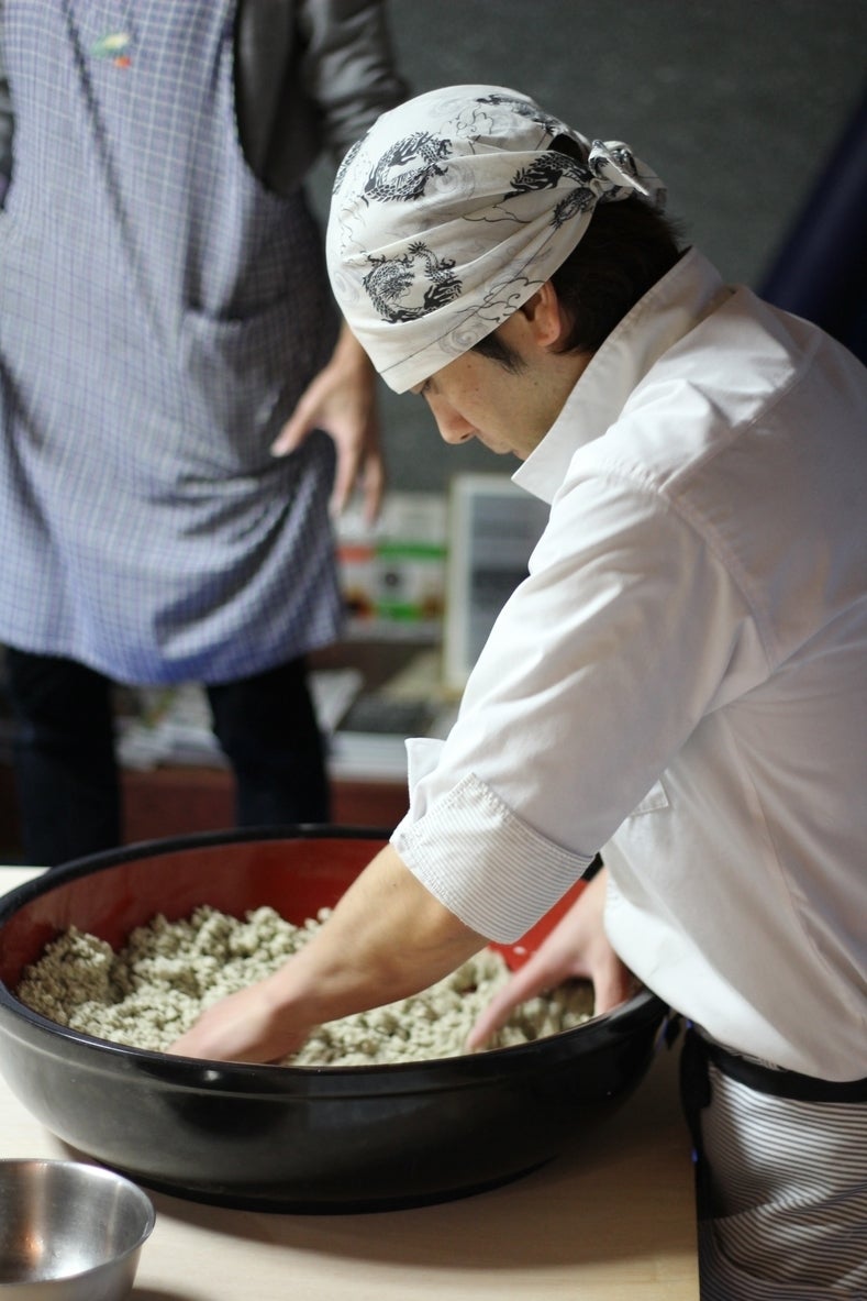 トップ画像とも2016年11月の蕎麦打ち講座にて@名もなき空き家(現:Wine & cafe Veraison)