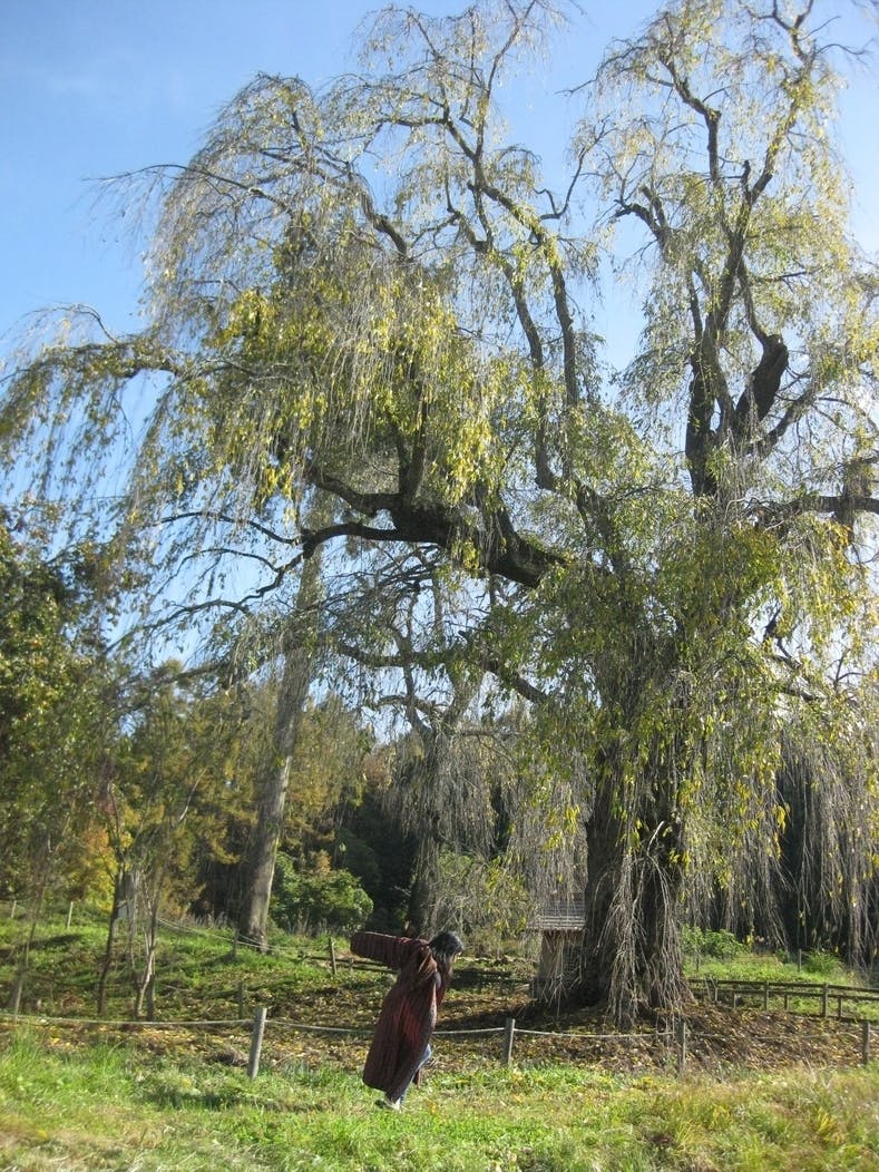 水中(みずなか)のしだれ桜と鈴木彩華さん(高山村在住ダンスアーティスト)