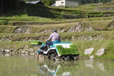 4/18(土)に棚田の休耕田の草刈のボランティアを実施しました。耕作されている田んぼだけでなく、所有者のいない田んぼの草刈も必要です。美観を保つためにも、手入れが必要なのです。土曜日の参加者はボランティア3人と地元の方5人と計8人。