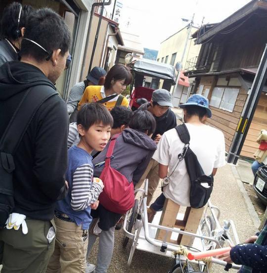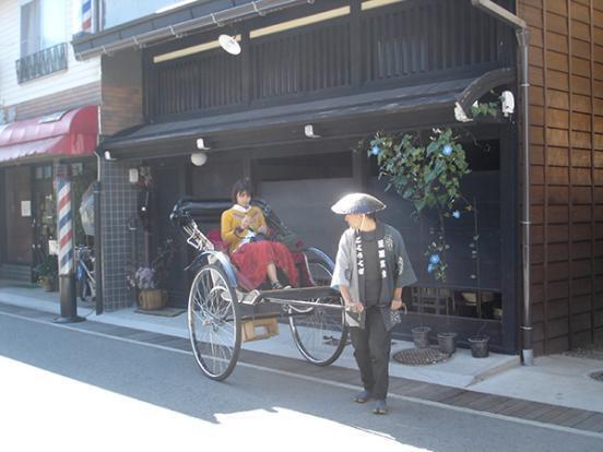 △人力車にのっ て古い町並みを散策する主人公 梓