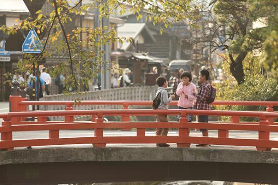△色鮮やかな赤い橋、名物みたらしだんご、無邪気な子供たち・・・