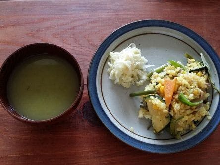 昼食:パエリア、サワーサラダ、ケールのポタージュ