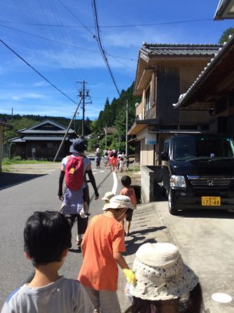 朝一番に、学校の近くで開催されている太郎生朝市に、お散歩がてら、みんなで行ってきました。