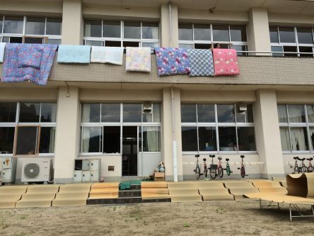 17日から、キャンプの準備に取り掛かっています。 旧太郎生小学校の運動場です。 まずは校舎内の窓を全部開けて、空気を通し、布団干しを…と思っていたのですが、生憎の台風通過。被害などはありませんでしたが、スッキリとしない中、できることから進めています。 教室の中を掃除しています。積年のホコリがすごい量です! 布団の数をチェック中。この布団他の寝具は昨年、美杉町内外の方々からご寄付いただいたものです。大切に使わせていただきます。