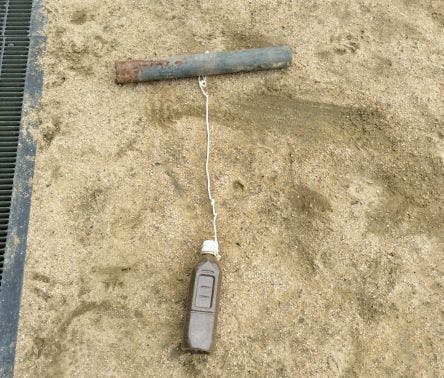 鉄パイプに砂を入れたペットボトルをぶら下げてあります。