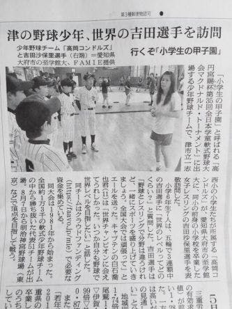 7月3日の朝日新聞で、FAAVOと一志西小学校の先輩でもある吉田沙保里さんとの対談の事を取り上げていただきました。