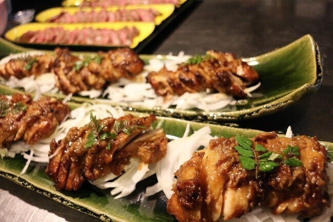 三重県熊野市で愛情たっぷりに育てられた地鶏、熊野地鶏を三重県四日市市の伊勢蔵味噌で漬け込み焼いた酒の肴。東海三県で愛され続けた豆味噌がしっかり入った食べ応えのある一品です。