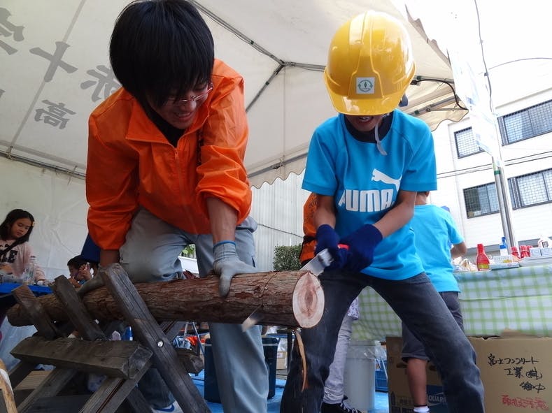 シンプルに手ノコで丸太を切るだけなのですが、切っていくにつれておが粉と一緒に木のいい香りがして思わず夢中になってしまいます!