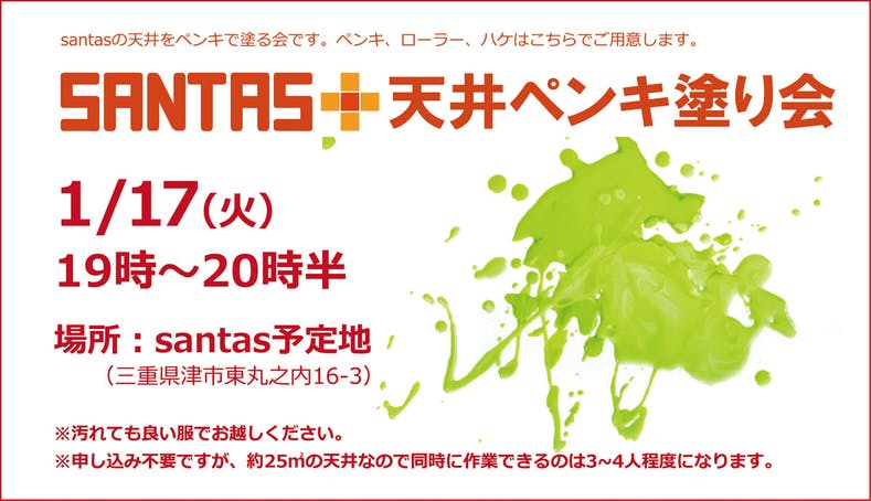 (天井のペンキ塗りは予定通り20時半に終了しました)
