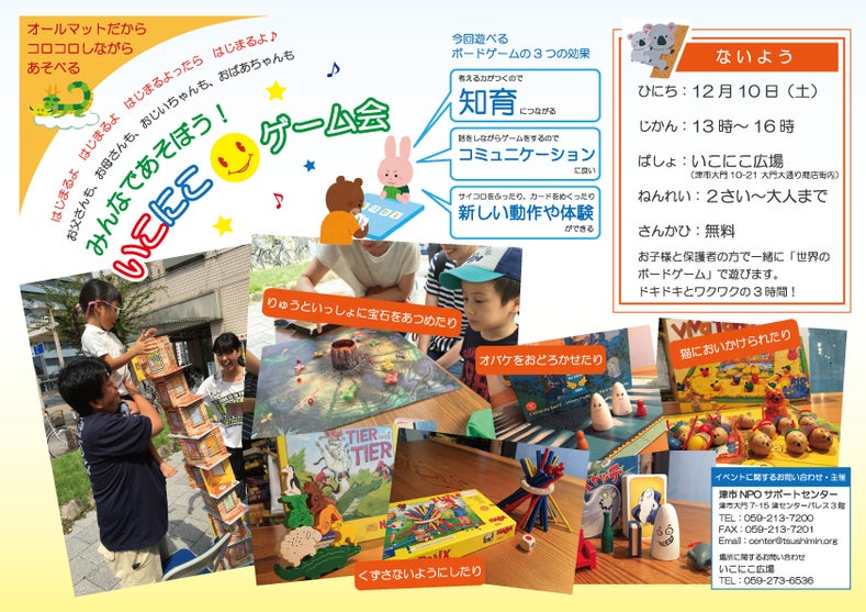 それと、12/10に、「いこにこ広場」という未就学児の支援センターでボードゲーム会をさせていただくことになりました。