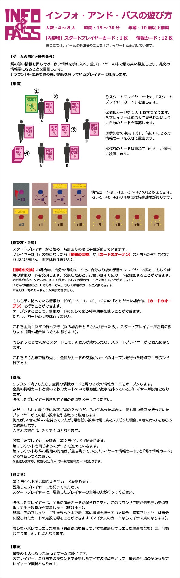 リターン品であるオリジナルゲーム「INFO&PASS」の遊び方(ルール)は以下のようになっております。