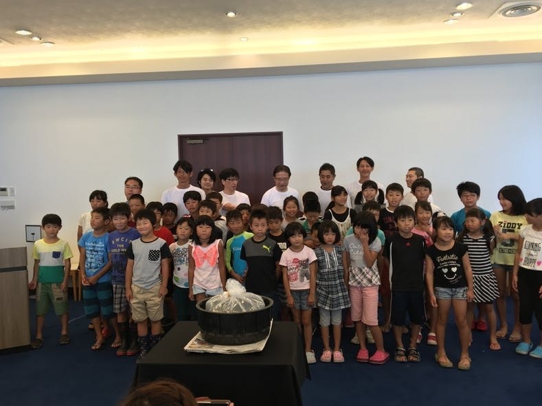 〈クイズ形式の勉強会の後、みんなで記念撮影をしました。〉
