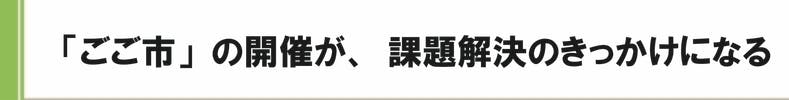 素晴らしい自然やお散歩スポットで、朝市に続き「ごご市」を毎日開催することができれば、現在、宮川朝市道路が抱える「午後からの集客」という大きな課題を解決することができるのではないでしょうか。