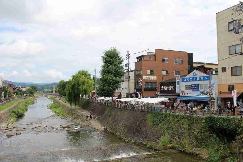 その景観はとてもきれいで、浅瀬で子供たちが水遊びを楽しみ、大人たちは水の音を聞きながらゆったりと高山を楽しめる市内でも有数のお散歩スポットです。