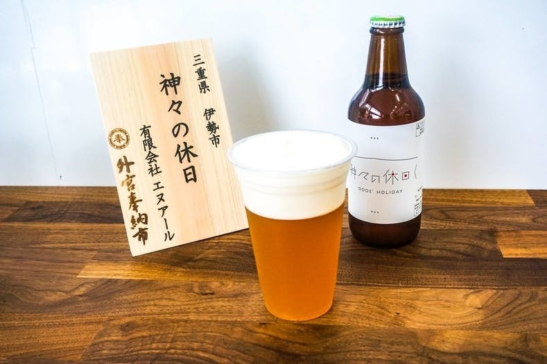 三重県伊勢市の伊勢の森の恵みで作られた数量限定のオリジナルクラフトビール「神々の休日」。ビール独特の乾杯の文化、世界共通の乾杯の文化とともに、数量限定のビール「神々の休日」と出会う少しの幸せを"人と人"、"地域と地域"を結んで"乾杯"を通じて幸せをシェアしていきます。