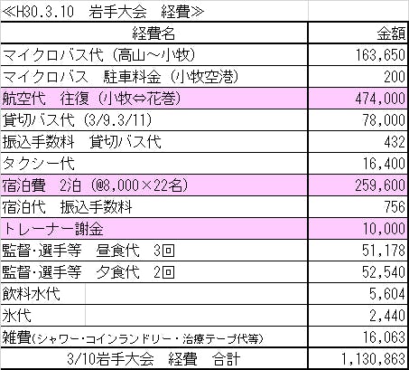 そのため昨年に比べ、試合による移動、宿泊等が増え、チーム活動費が切迫した状況にあります。