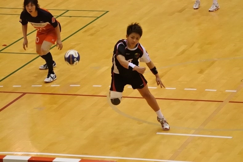 7mTを決める比嘉美咲紀。宮崎と並ぶチーム最多の4得点で攻守ともに活躍しました。