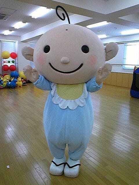 赤ん坊のキャラでいつまでも若いしん坊君ですが、長年の活躍で自慢の水色の服の色は褪せてところどころ、虫食いも。