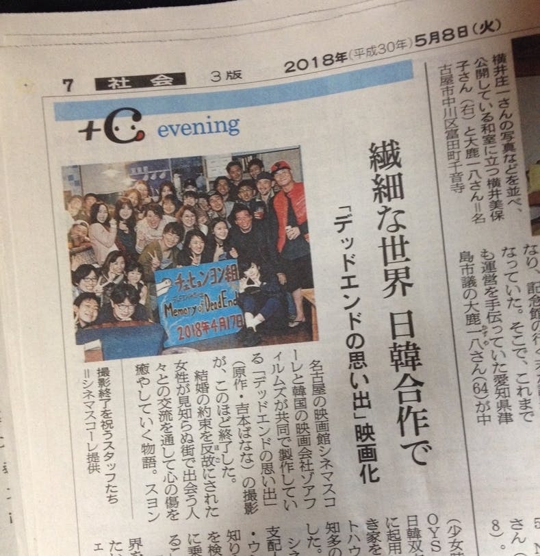 本日5月8日付朝日新聞夕刊に「デッドエンドの思い出」映画化の記事が掲載されました。