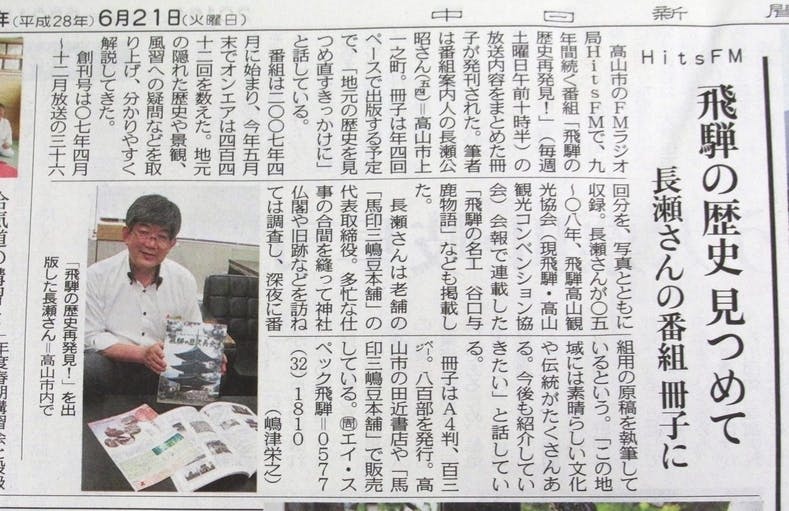 こんにちは!ヒッツFM『飛騨の歴史再発見』案内人の長瀬です。