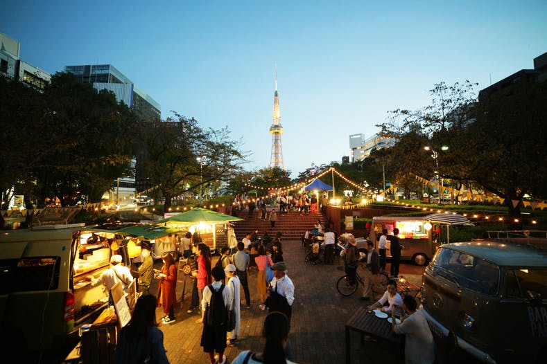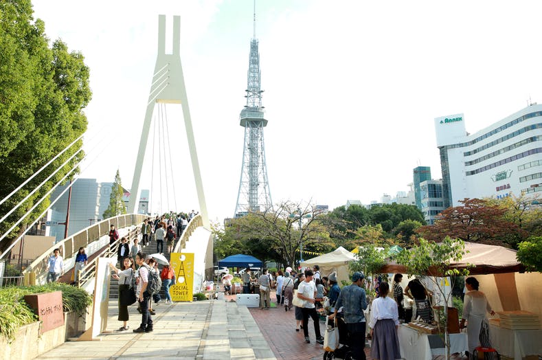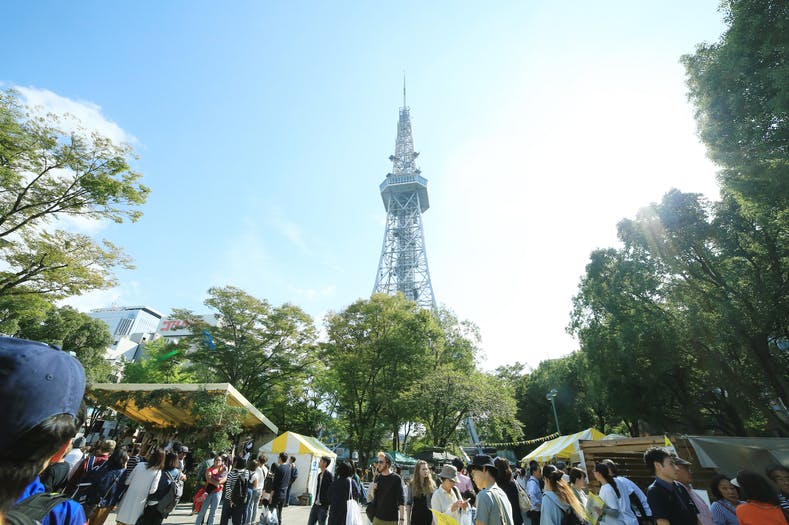 ※MARKET会場のテレビ塔のある公園は、名古屋、栄の中心にあり、利便性もよく、どこからでも園内に入れる好立地。
