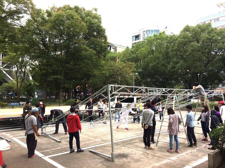 ※毎年、テレビ塔の中から運び出し、ボランティアスタッフのみんなと一から組み立てを行う音楽ステージ。