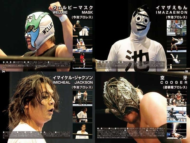 『ローカルプロレスラー図鑑+2016』より。今池プロレス(愛知)と道頓堀プロレス(大阪)の選手紹介ページ。