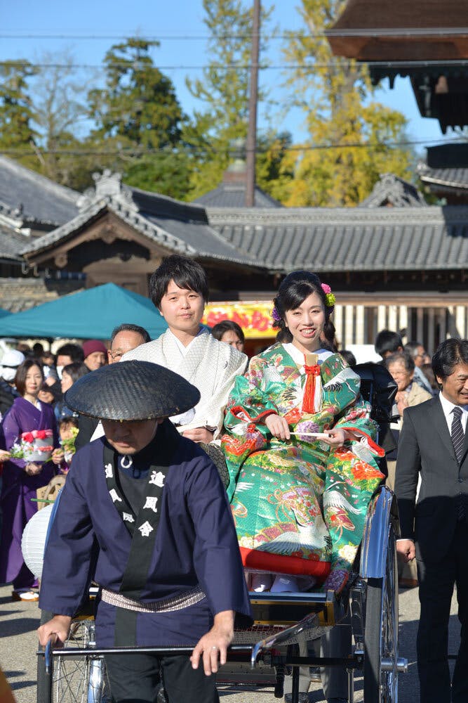 和風の結婚式やパレードは一身田の町並みにとてもよく合います。