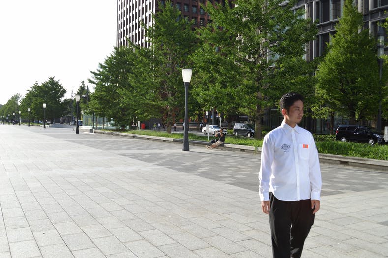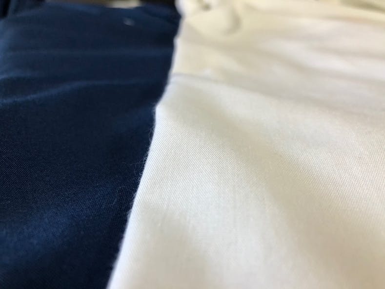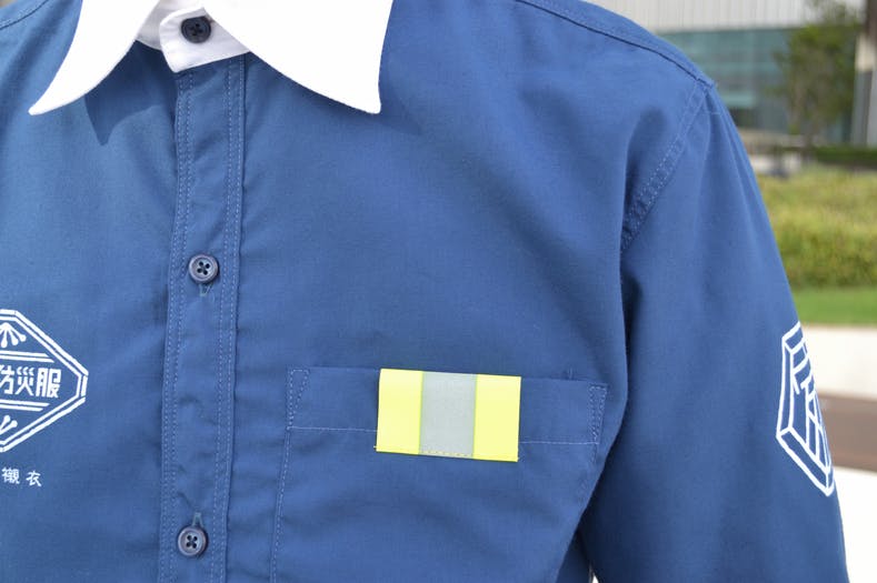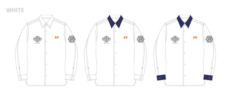 家守防災服の第一弾は「難燃素材」のWHITE&NAVYのシャツ!